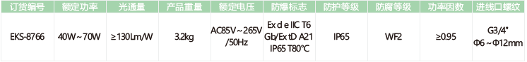 EKS8766免維護(hù)led防爆燈技術(shù)參數(shù):